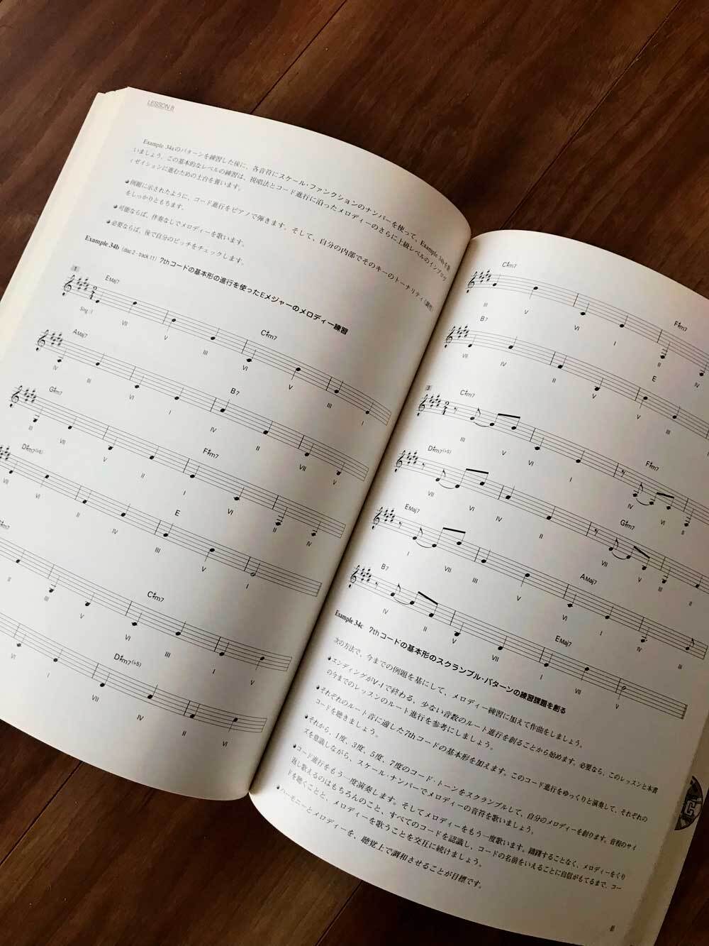 レッスンでは課題ごとに抜粋したものをホワイトボードに転写したので、書き込み等はありません。単元ごとに非常に緻密な音源トラックが付随(CD)します。
